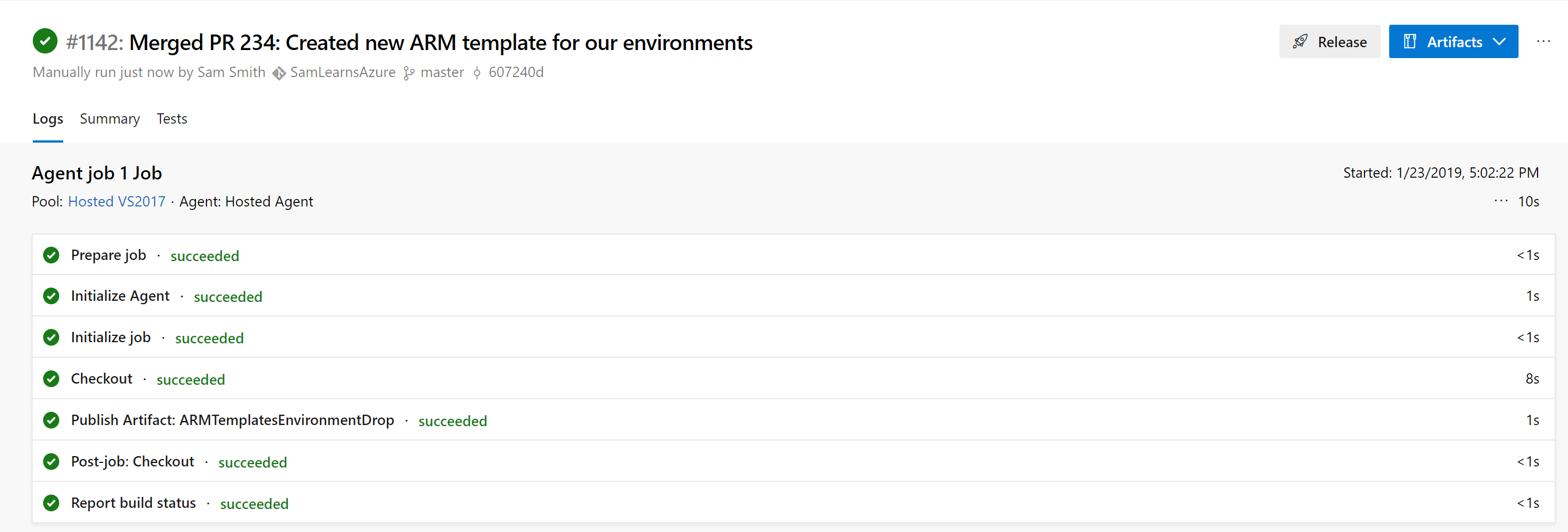 Finally we are ready to add the new add the new “Azure Resource Group Deployment” task, which deploys an ARM Template.