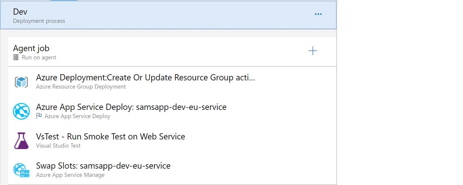 Here is what the release looks like with the Smoke test task between the deployment task and the swap slots task