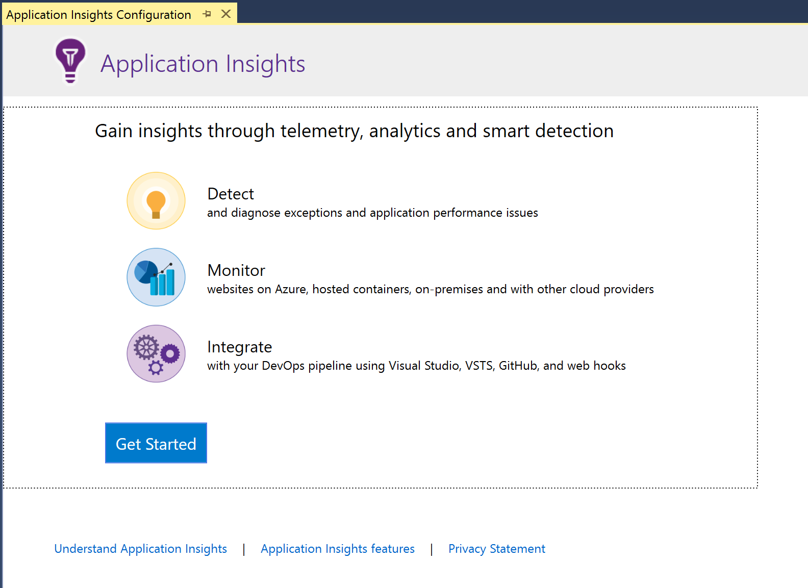 Application Insights is used to monitor your web applications, returning analytics for performance, errors, and usage. Application Insights, for minimal effort, can likely make the biggest impact to your applications today – especially if you do not currently have a monitoring solution. Additionally, setup is very easy.