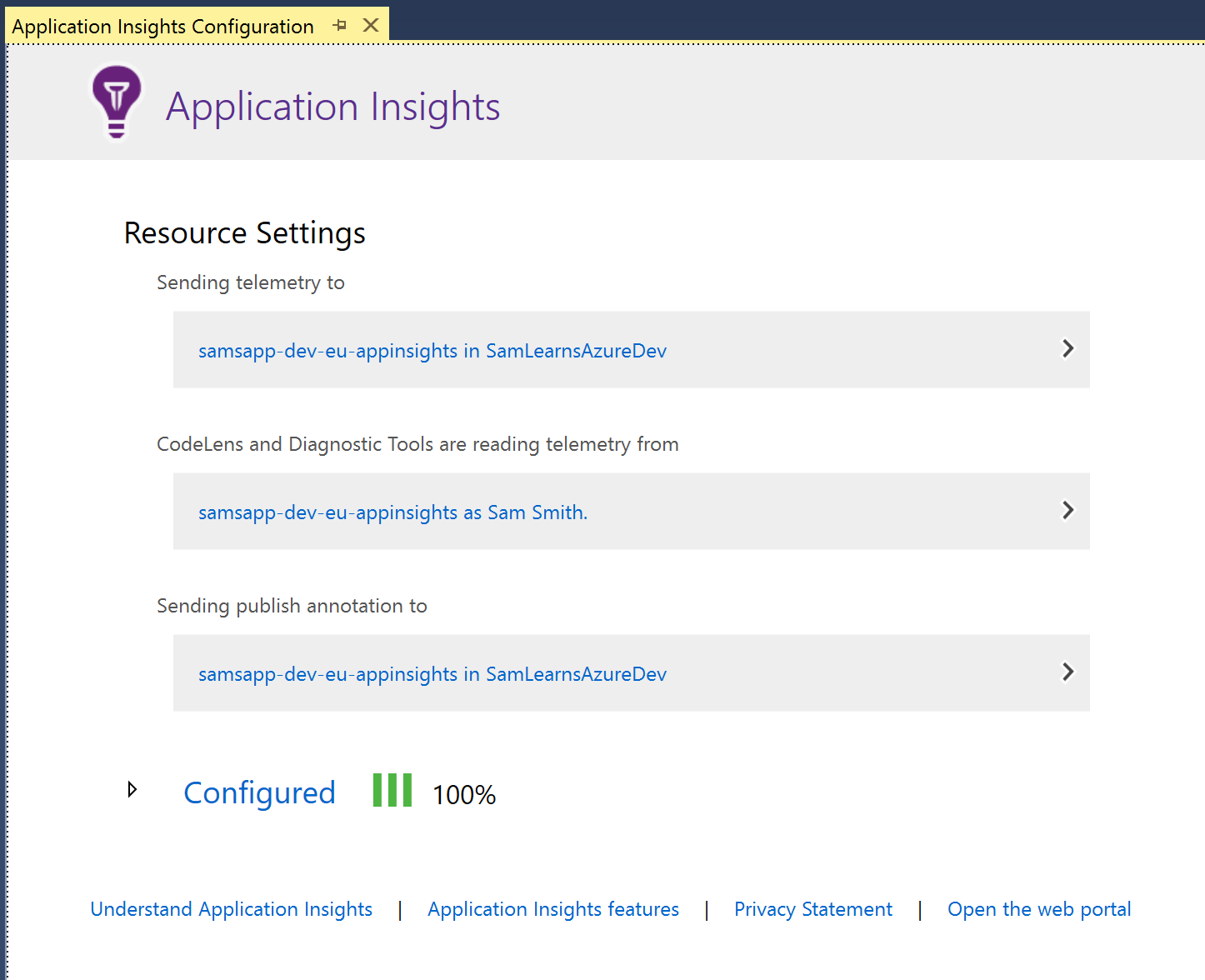 At this stage, it’s a good time to update the Application Insights NuGet package to the latest version – this unlocks some useful features such as “Live Metrics” later! (The default Application Insights NuGet package is a little old).