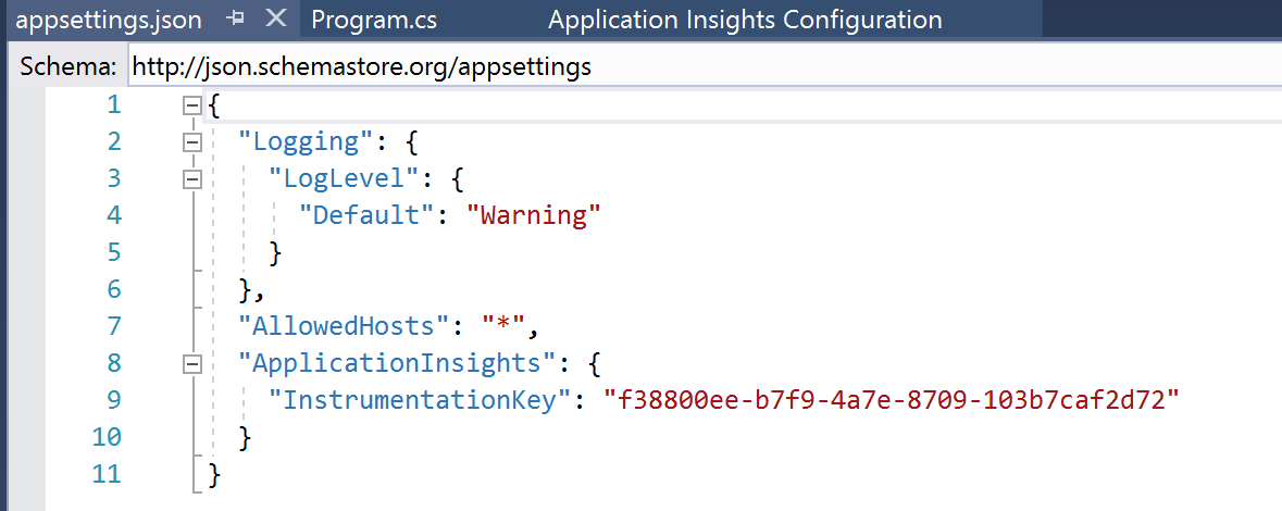 Adding Application Insights to our project also added a line to our Program.cs file, which we can see in the screenshot below on line 23.