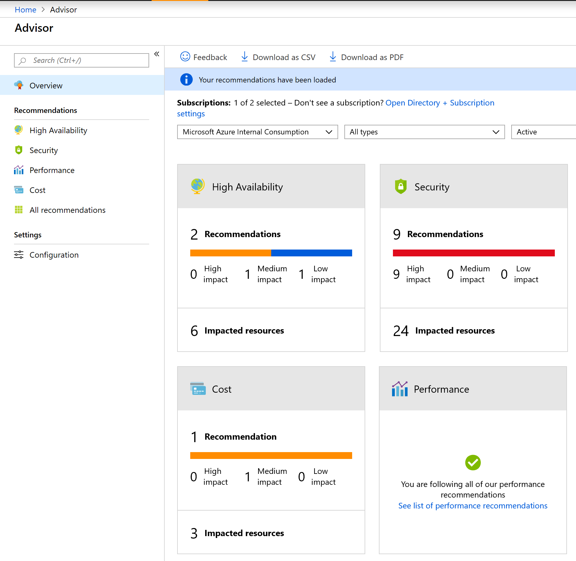 Today we are going to look at the Azure Advisor to see where we can improve our implementations. This will help us ensure we are more secure, save money, maximize performances, and ensure we have best practices for high availability. Going forward, we will try to pay more attention to the recommendations as we deploy new resources. We won’t dive into all of the recommendations, but we will get a taste as we resolve most of the recommendations today