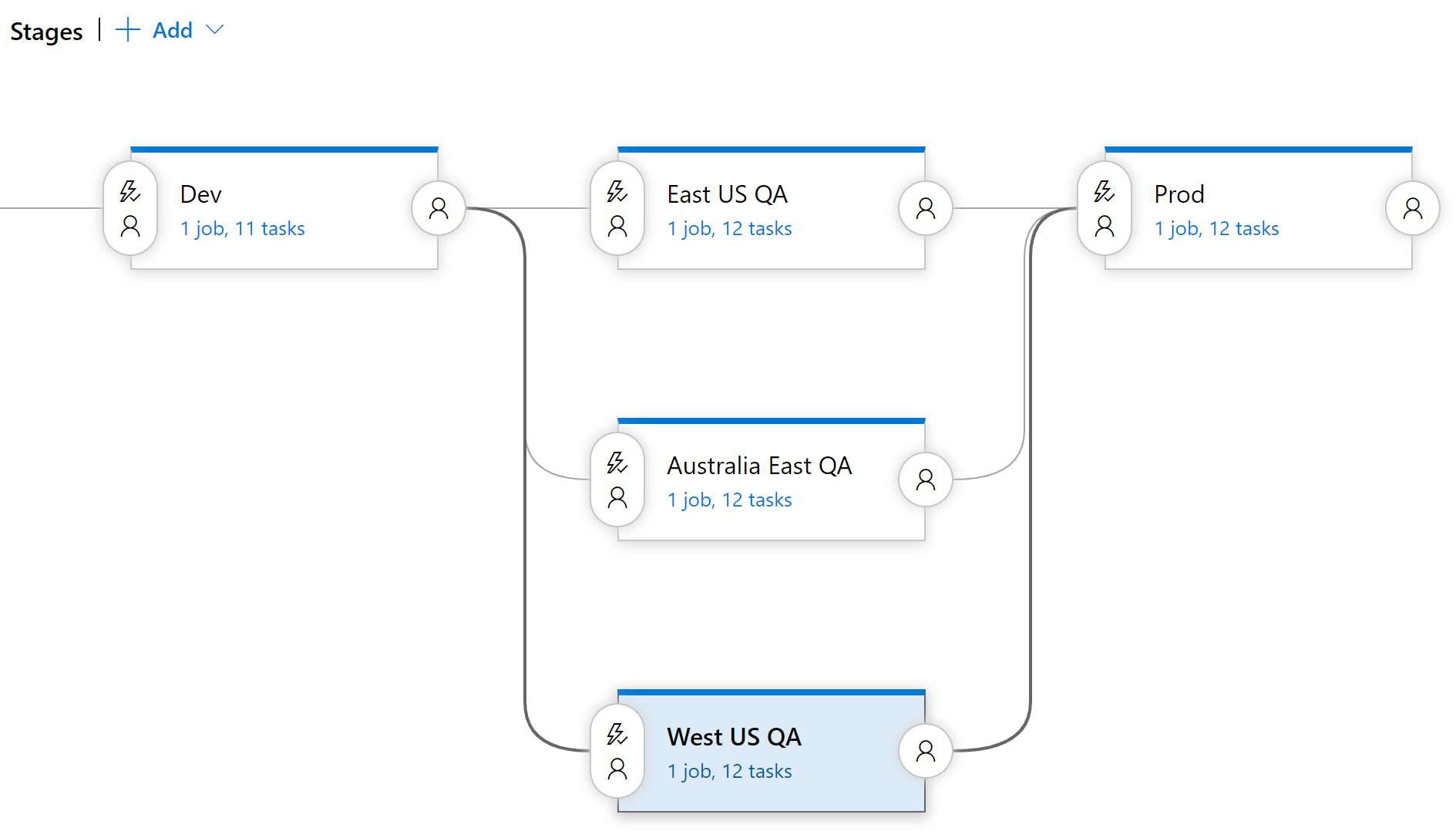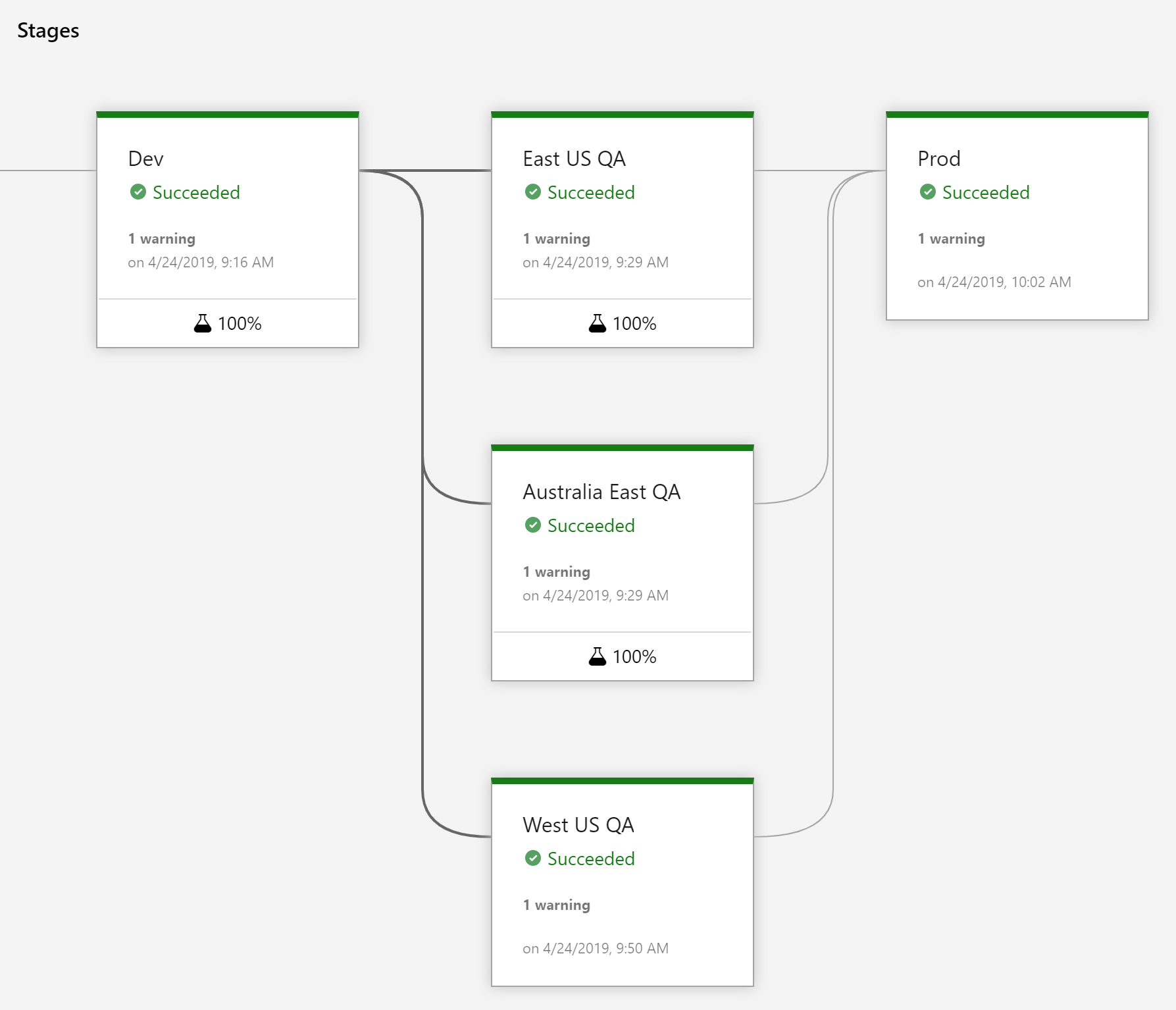 We deploy, and watch it successfully finish (!!!). This is a beautiful sight to see. Now we have the flexibility to add environments at anytime. As we don’t want to eat up a lot of $$$ on Azure, we remove the West US environment, but we are keeping Australia for our CDN post next week.