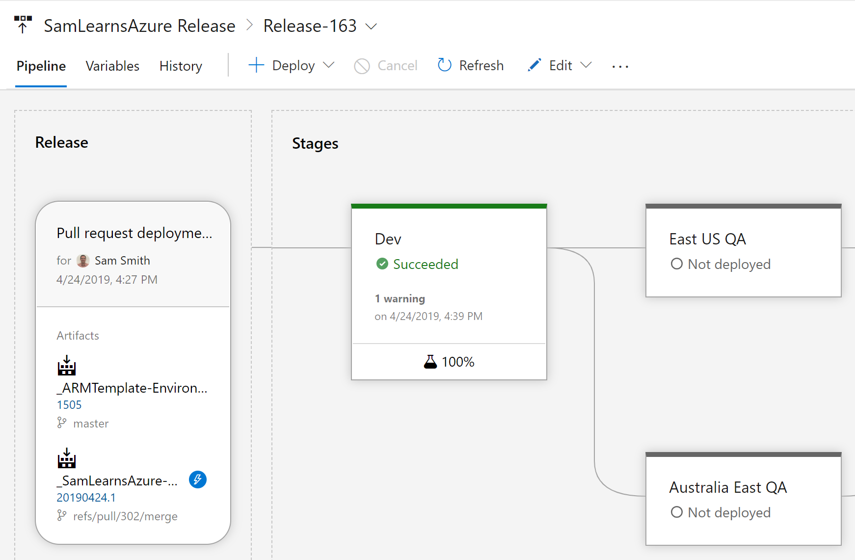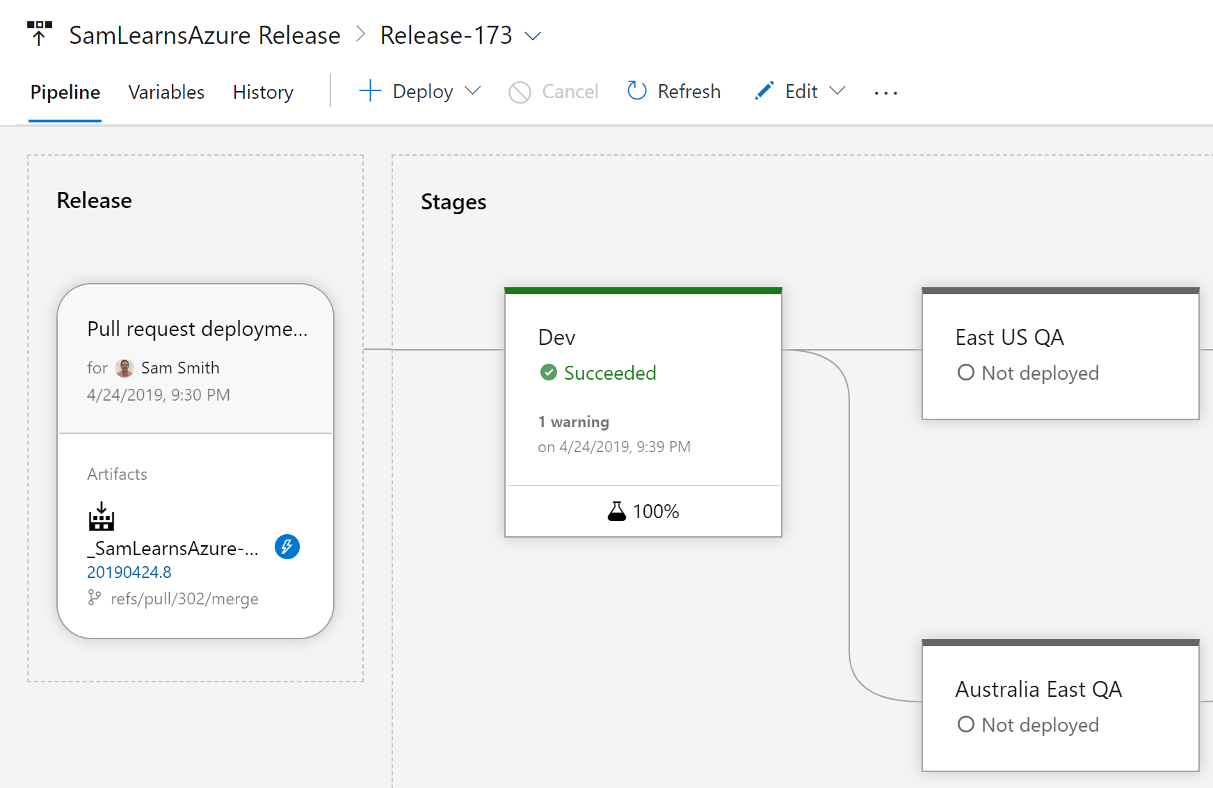 and learned a bit more about sharing PowerShell variables. We can now only test both a build AND release in our Pull Requests, increasing our confidence that merges to the master branches will work and therefore increasing our DevOps maturity.