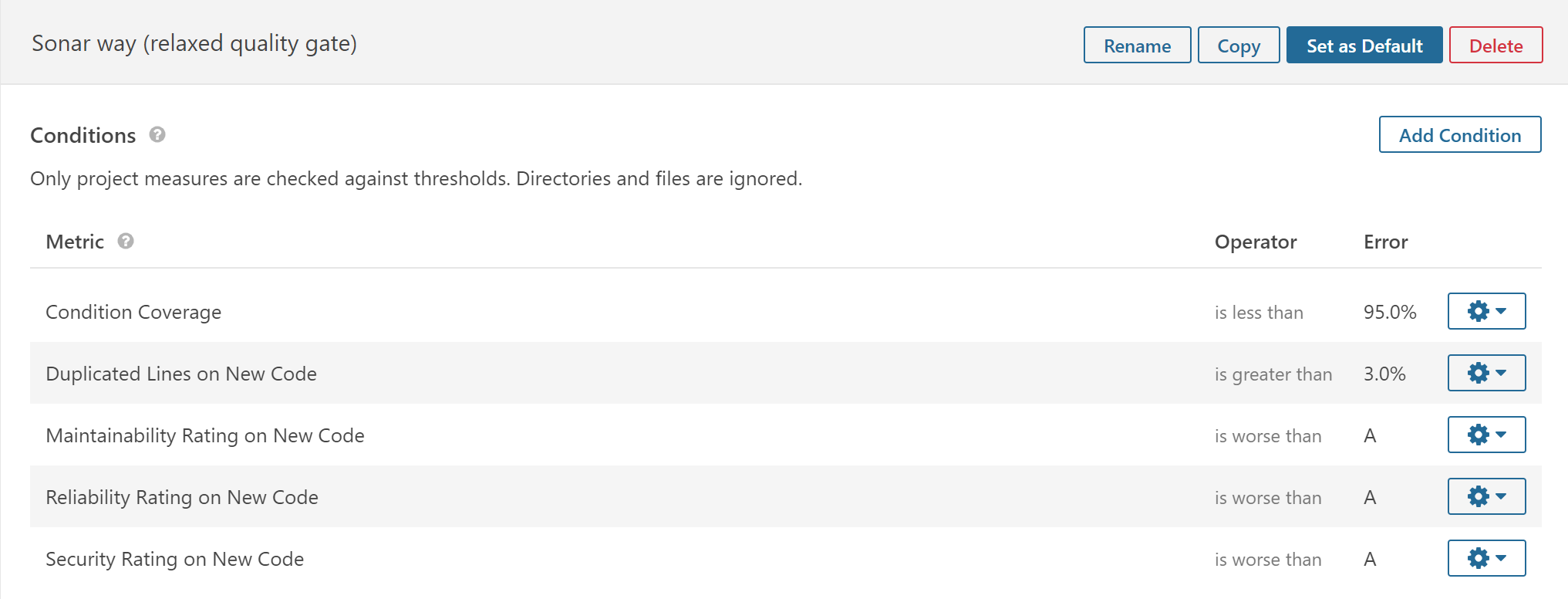 We are going to call this new quality gate: “Sonar way (Relaxed quality gate)”