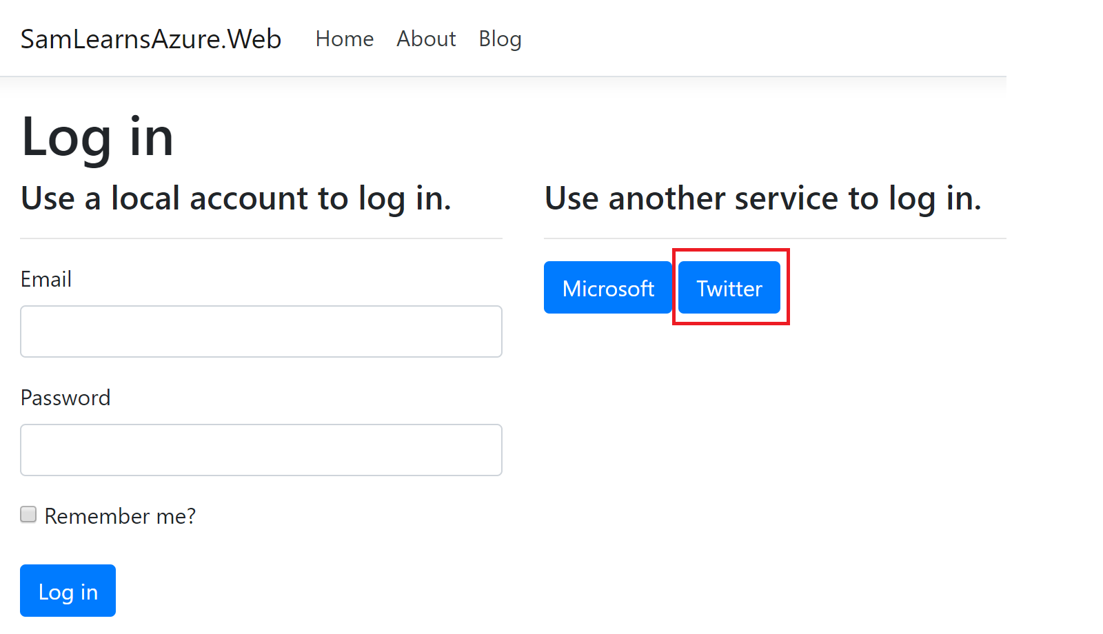 - Adding Twitter authentication: https://docs.microsoft.com/en-us/aspnet/core/security/authentication/social/twitter-logins?view=aspnetcore-2.2