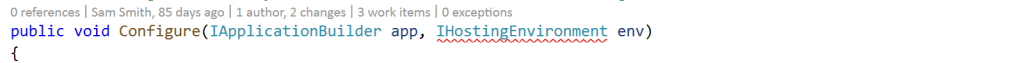 We replace this with IWebHostEnvironment, also adding a using statement for “Microsoft.Extensions.Hosting” to the top of the class.