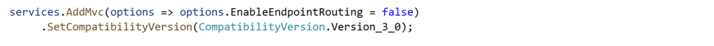 While in the startup.cs, we also update the compatibility version to 3.0.