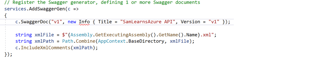 We then need to make a minor change to our startup.cs file, where we initialize Swagger, as currently the “Info” property is no longer working.
