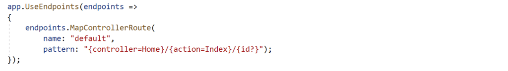 In a new .NET Core 3.0 project, this now uses the app.UseEndpoints() function to define the default routes, with a new MapControllerRoute function.