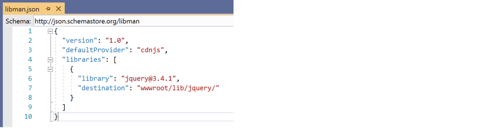 This adds a new “libman.json” file to our project, where you can see it references the new library we have added.