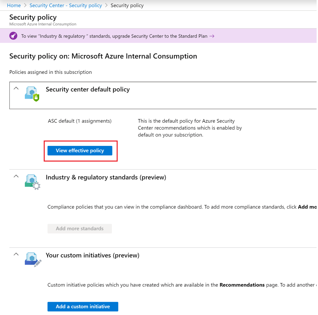 This takes us to the security policy blade, where we select the “view effective policy” button