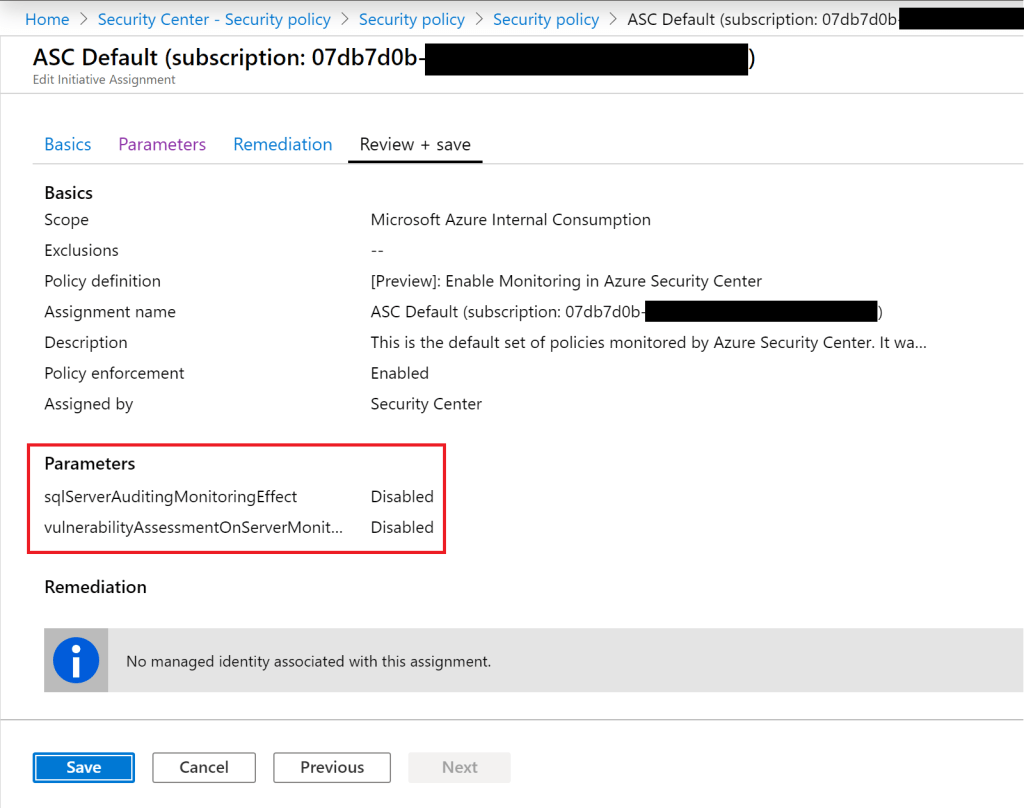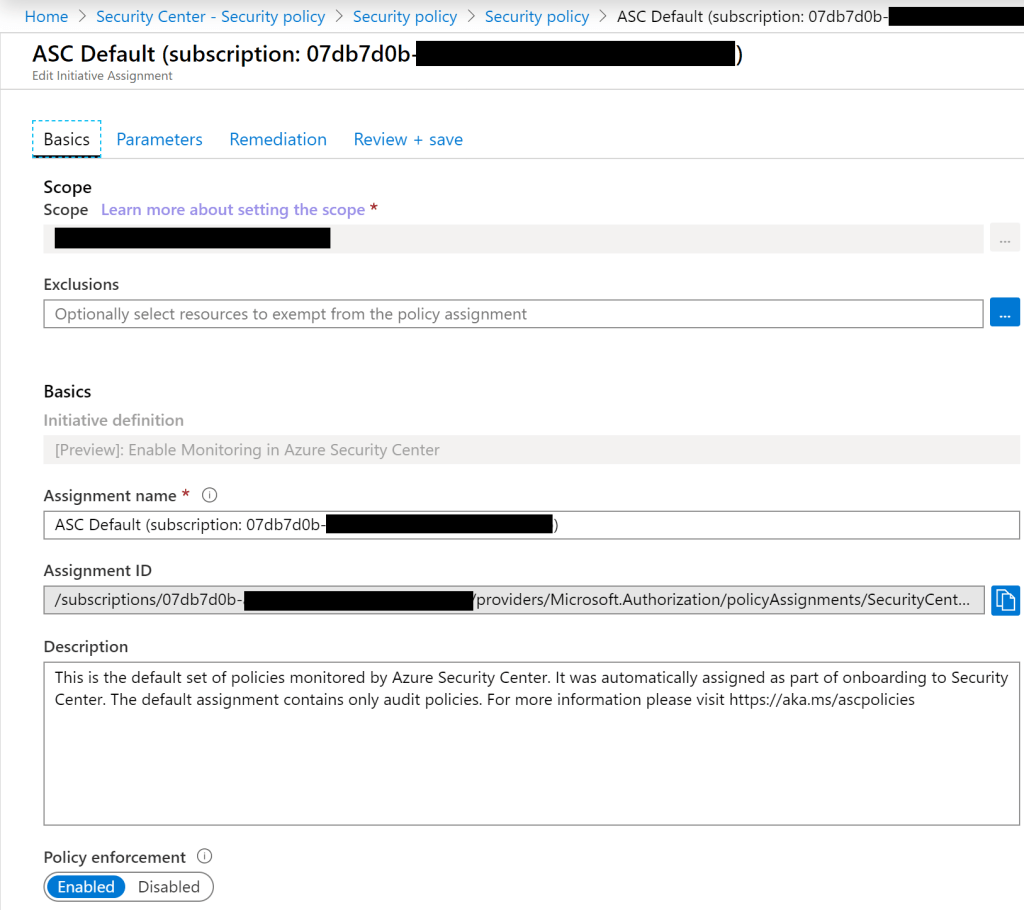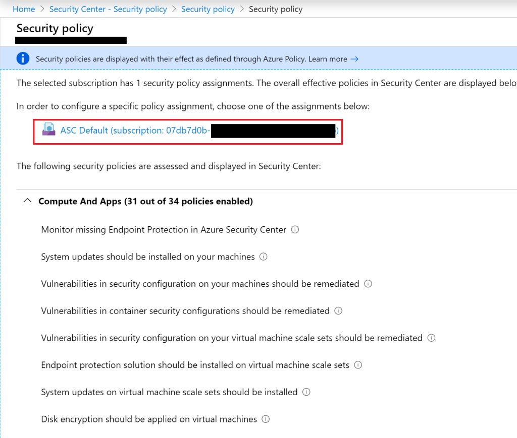 Now we can see all of the policies “effectively applied” to our subscription. We click on the subscription to be able to edit these rules. Note that if you have management groups, you can also set these rules at that level, instead of individual subscriptions.