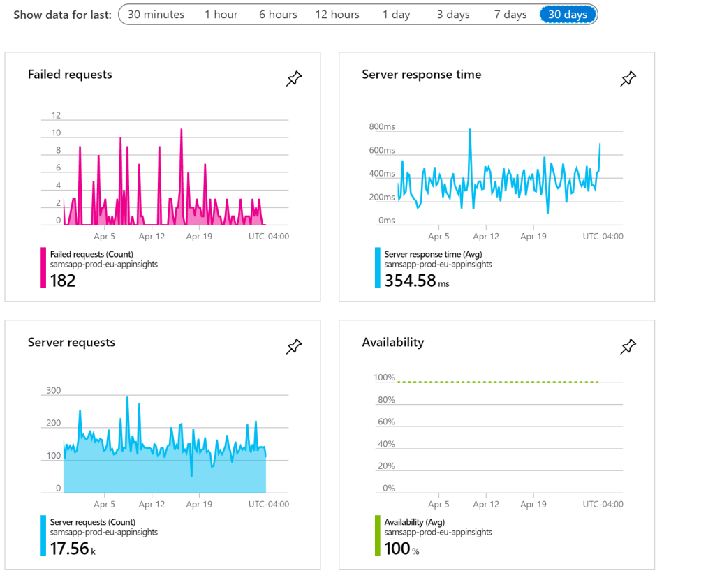 Today we’ve added availability tests to our project, giving us another metric to help monitor our application in Application Insights.