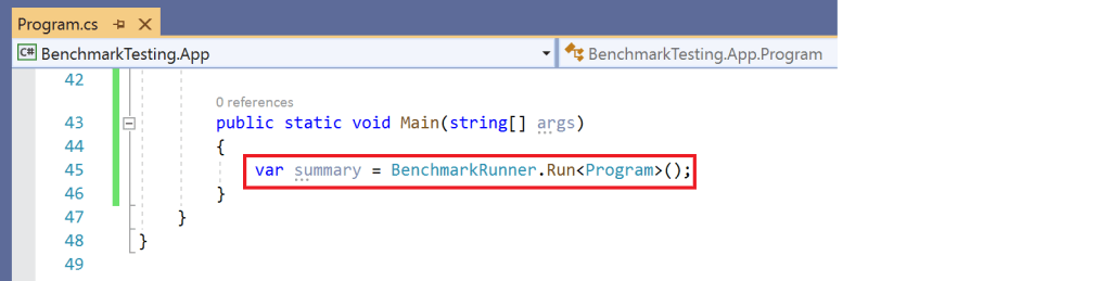 Finally, in the Main entrypoint to our console app, we add the BenchmarkRunning Run command.